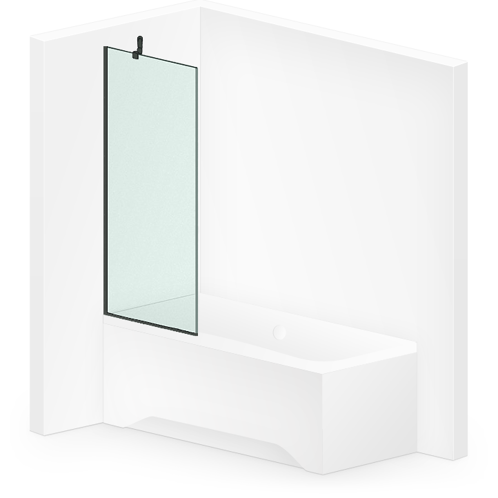 Конструкція: статична душова шторка на ванну. Складається із однієї нерухомої частини. Скло в металевому профілі на стику зі стіною та знизу.
